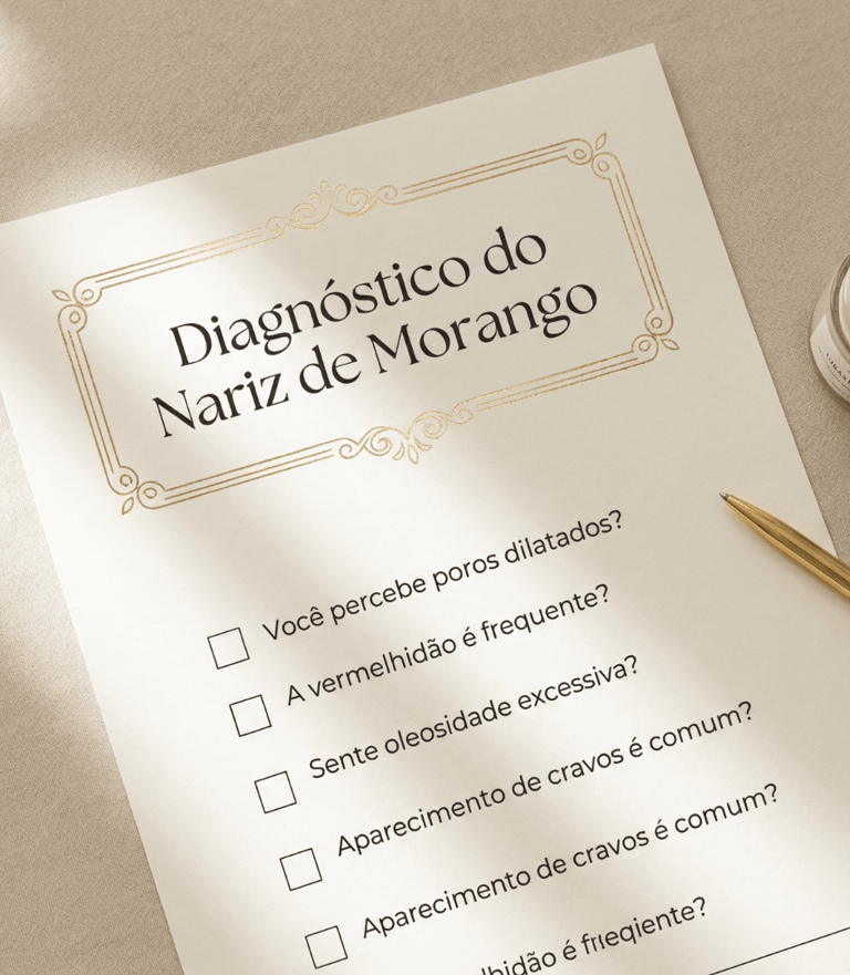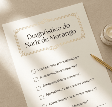 Quiz de 4 perguntas simples que identifica se seu nariz é Tipo A (cravos pretos visíveis), Tipo B (cravos brancos profundos), Tipo C (textura grossa + poros dilatados) ou Tipo D (oleosidade extrema). Cada tipo tem um protocolo específico que funciona melhor para ele.